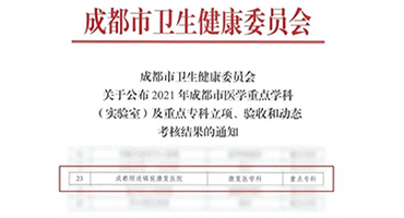 成都顾连锦宸康复医院被评为成都市重点专科建设单位!